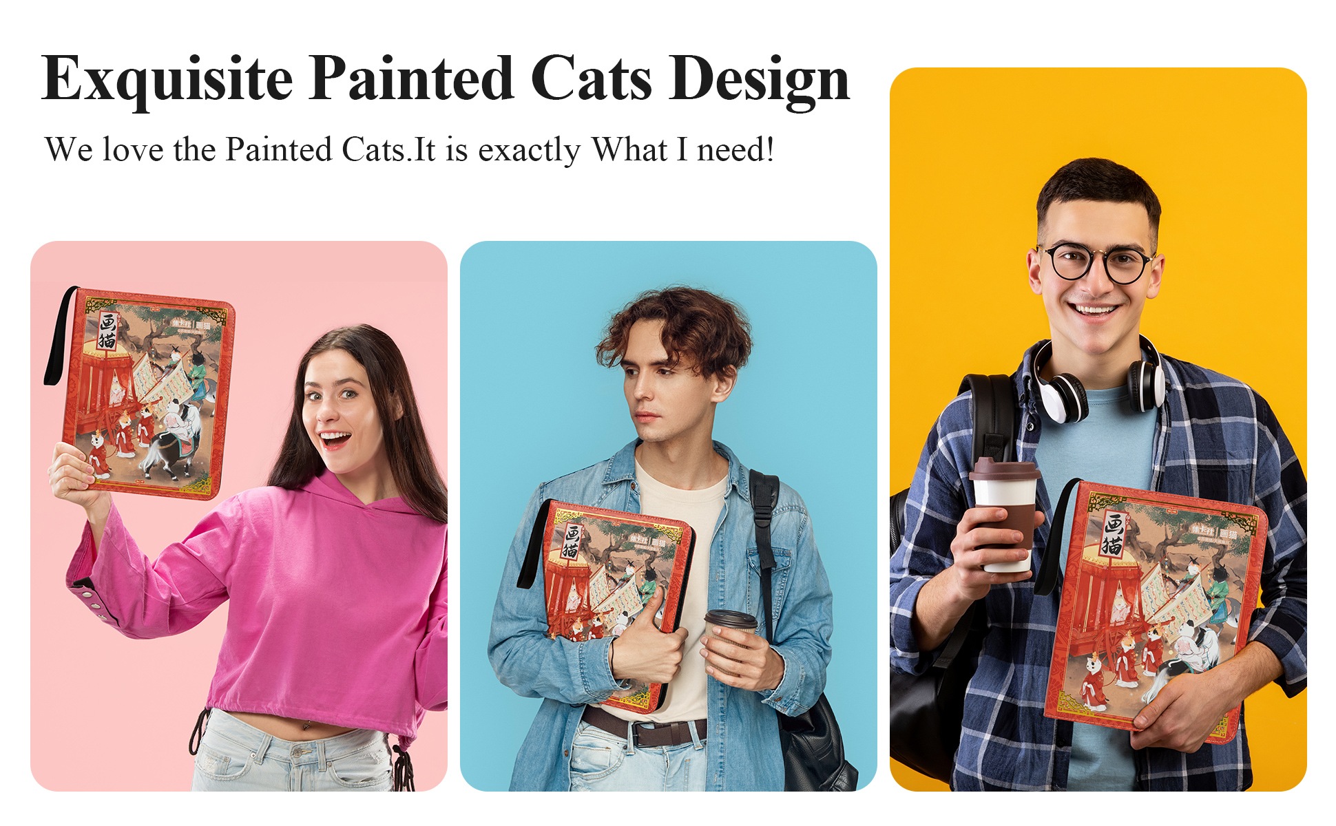 CARDFUN Drawing Cats Collector Card Album 9 Pocket TCG Trading Card Binder PU Leather Cover 360 Pocket Card with Sleeves