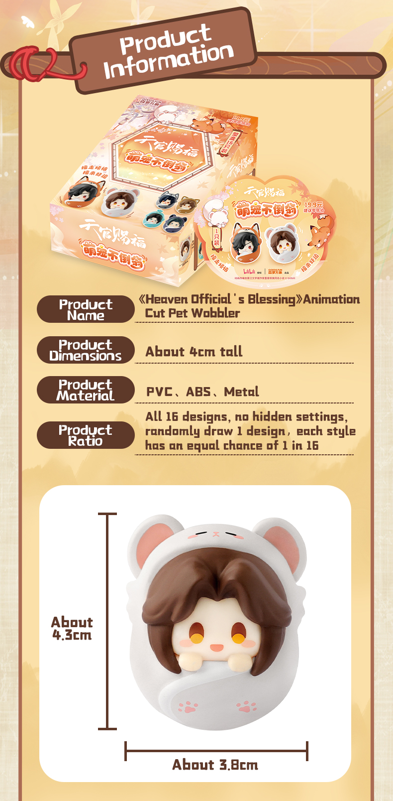 CARDFUN Heaven Official's Blessing Cute Pet Wobbler PVC ABS Collectible Toy Blind Bag 16 designs Cartoon Anime