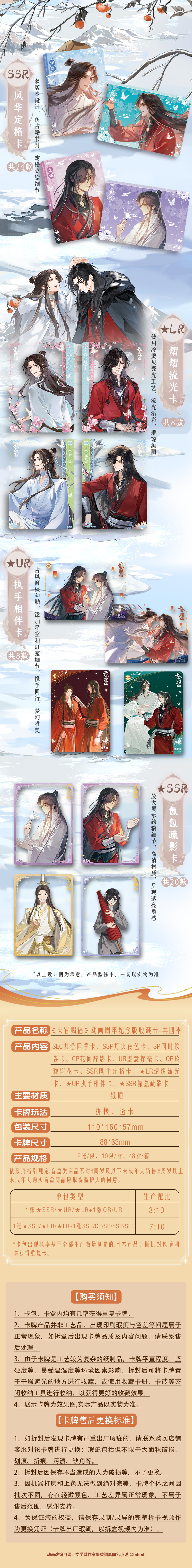 CARDFUN Heaven Official's Blessing TGCF Xie Lian Trading Cards Four Seasons 10 Packs Official Anime TCG CCG Collectable Card--New Version Booster Packs