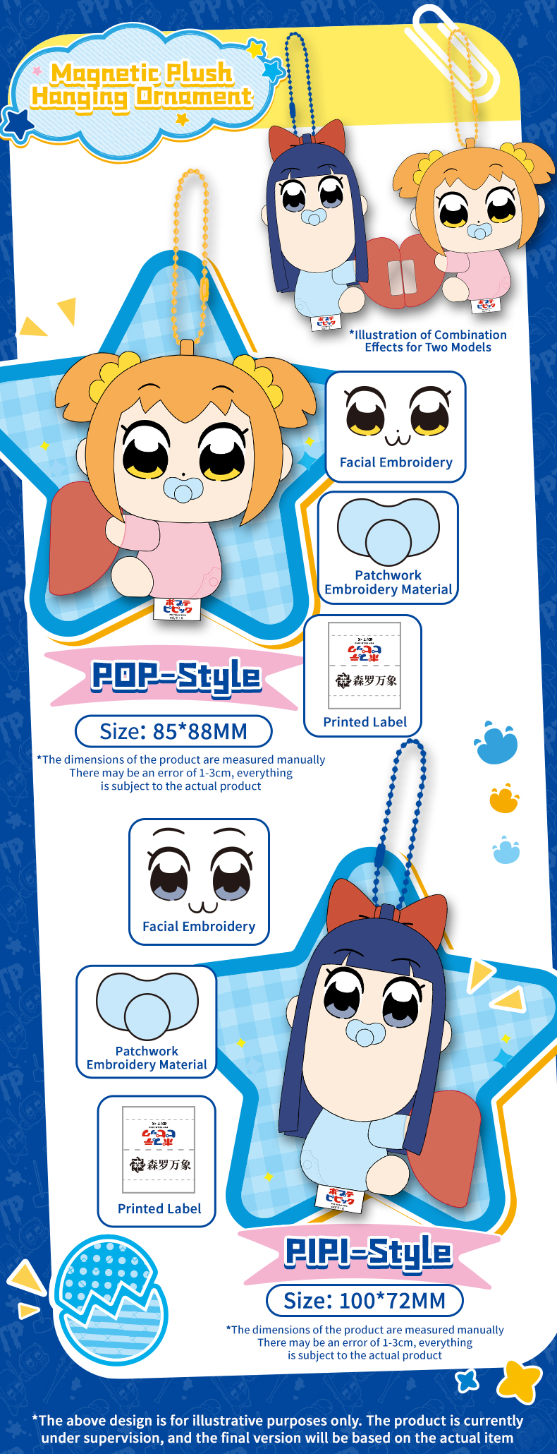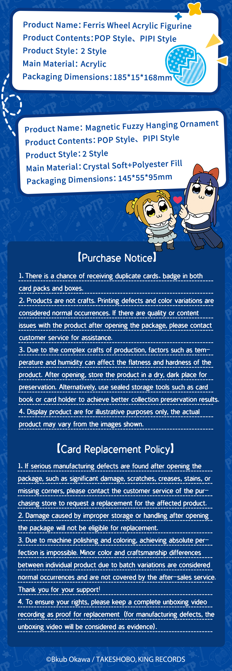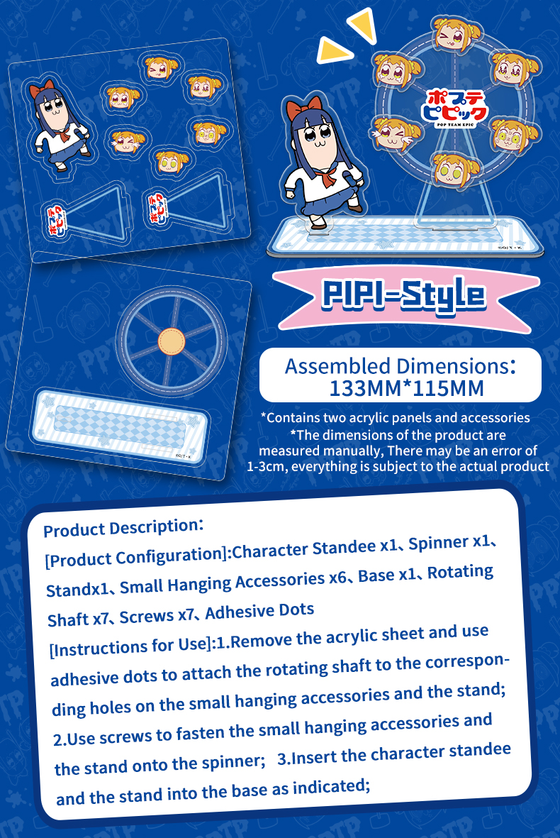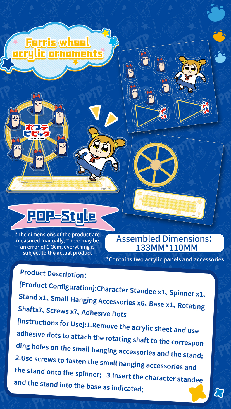 CARDFUN Pop Team Epic Acrylic Ferris Wheel Plush Doll Keychain Japanese Cartoon Anime Merch (4 pieces/1set)