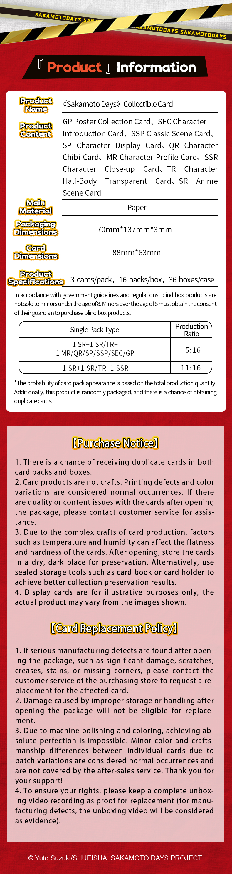 Cardfun Sakamoto Days TCG CCG Collectible Cards 1Box/16Packs premium collection