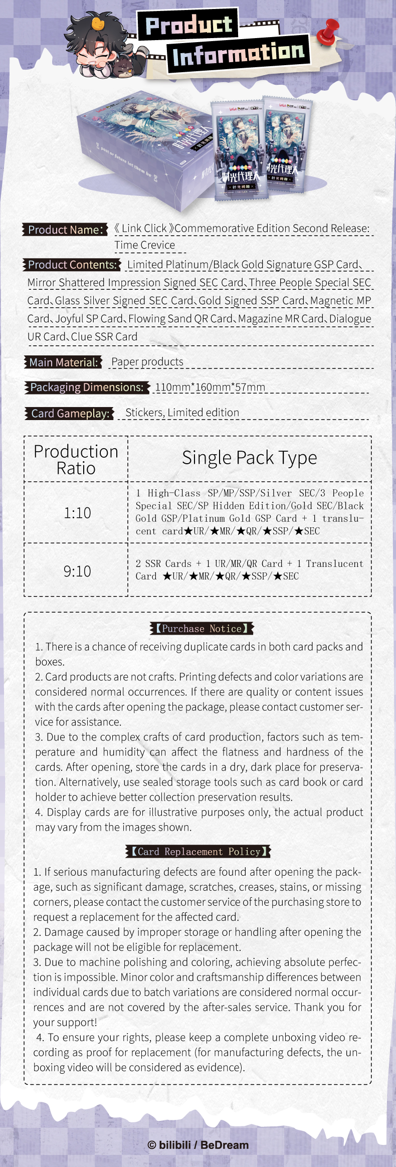 Link Click Time Gap Time Traveling Cheng Xiaoshi Lu Guang TCG CCG Collectible Cards 1Box/10Packs